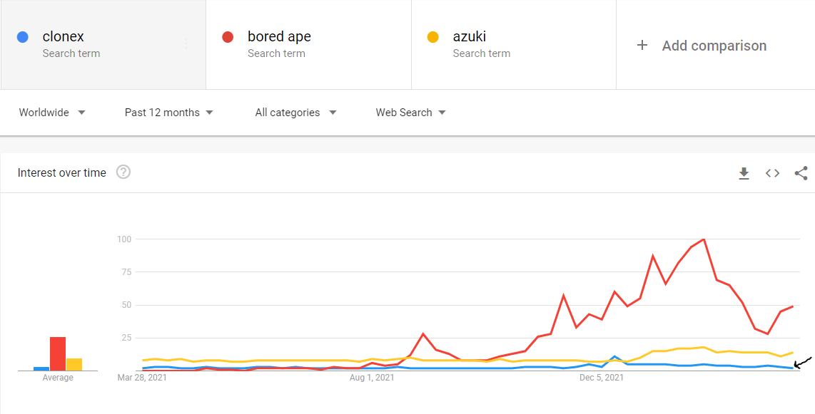 Google Trends is a powerful tool that can help identify strong buys/sells for the short, mid, and long term in the NFT space