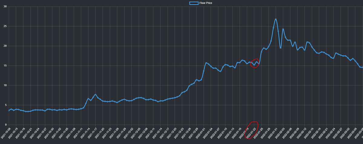 See example #MAYC chart below - 1/21 roughly marks beginning as mentioned