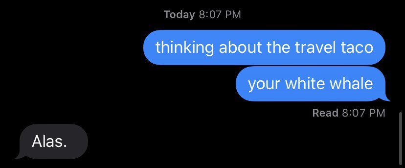 my dad can spend ten minutes enumerating the travel taco’s many charms but as soon as you ask “so a burrito?” he shuts down