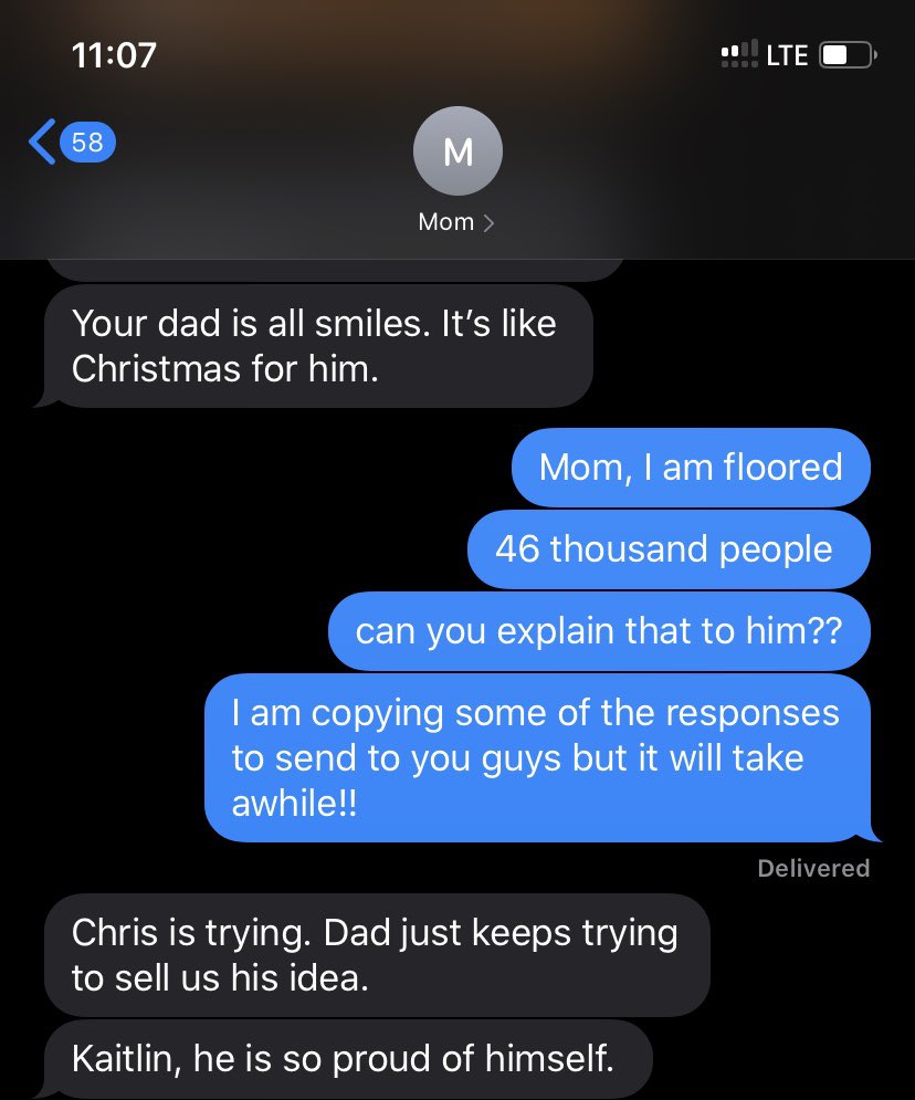 my dad realizes he has made a ripple online because my brother’s co-worker saw the tweet and immediately phoned him