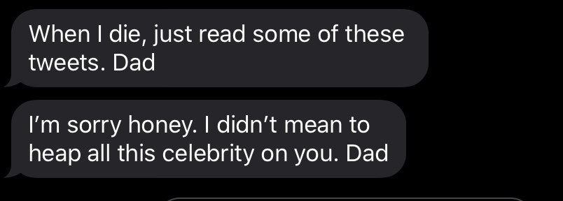 also my dad is Googling the tweets so he can see some of the replies, please be nice lol