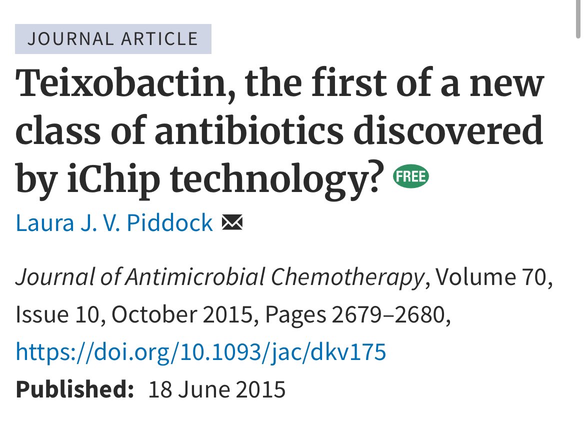 TEIXOBACTINA nace en 2015 fruto de la colaboración interdisciplinar entre investigadores que usaron un iChip para cultivar bacterias del suelo que hasta entonces no eran cultivables. Producido por la bacteria Eleftheria terrae, en busca de una solución para las resistencias.