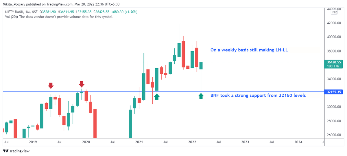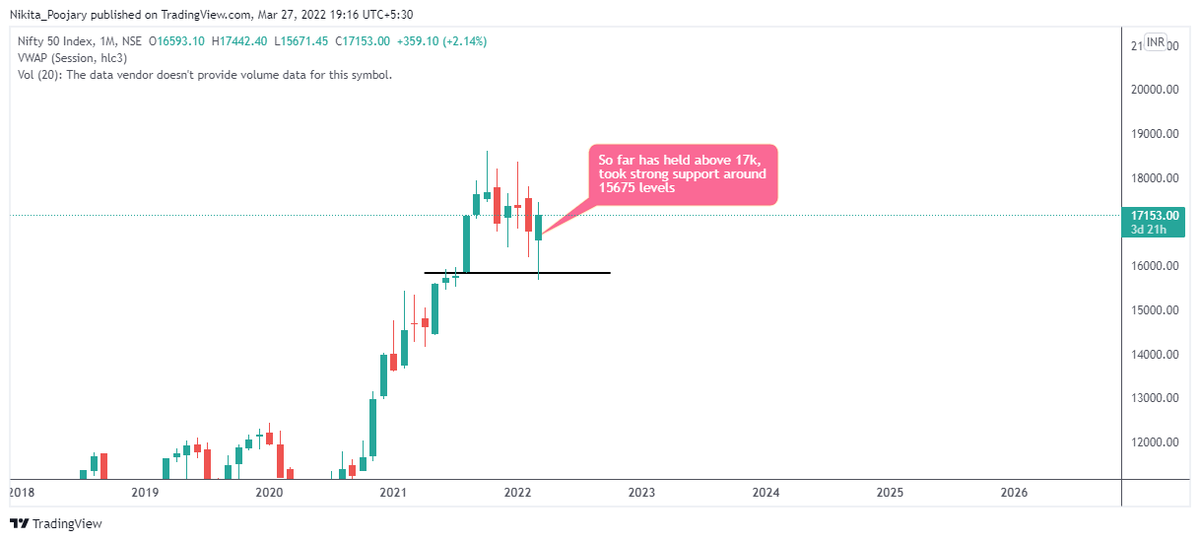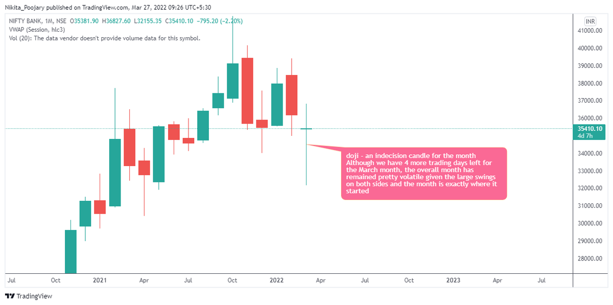 • However the huge wicks on both sides clearly depicts the volatile moves for the month