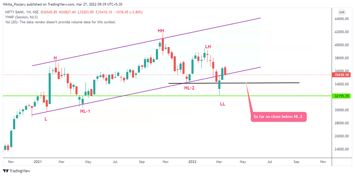 • So far we haven't got a closing below HL-2 (i..e. weekly close below 34k)