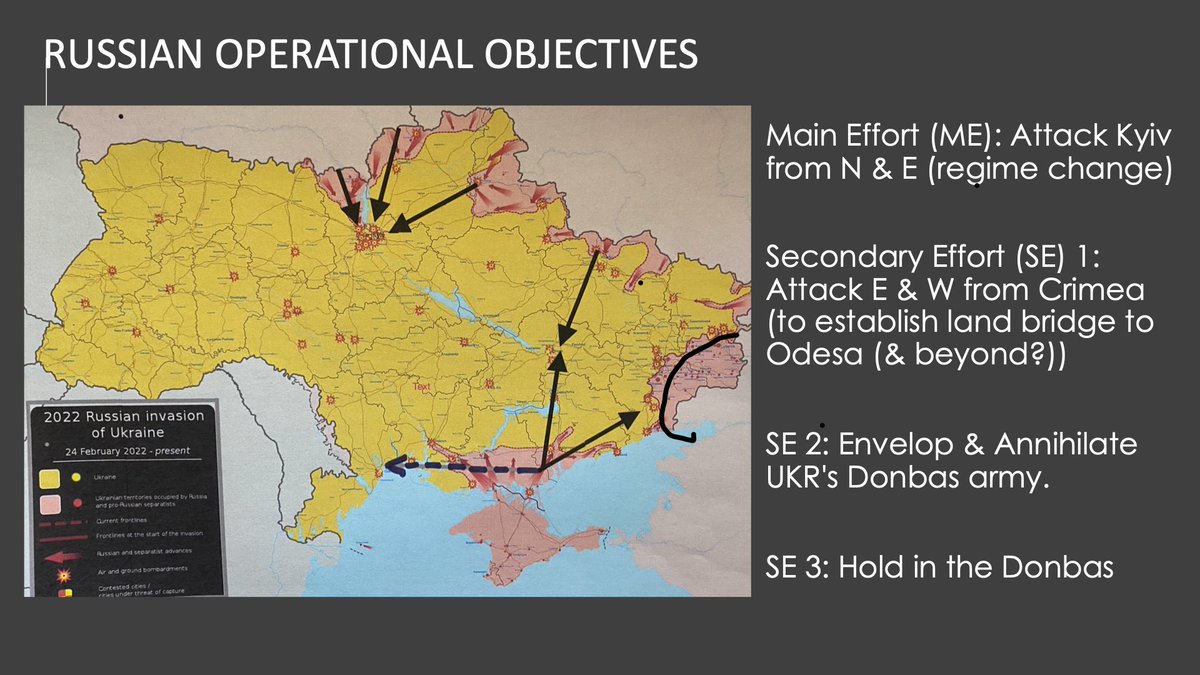 A Putin shift to a Main Effort in Donbas, with a potential link up of forces from N & S at Dnipro, would enable his Army to mass forces on what some claim are his "new" objective: Eastern UKR. 7/