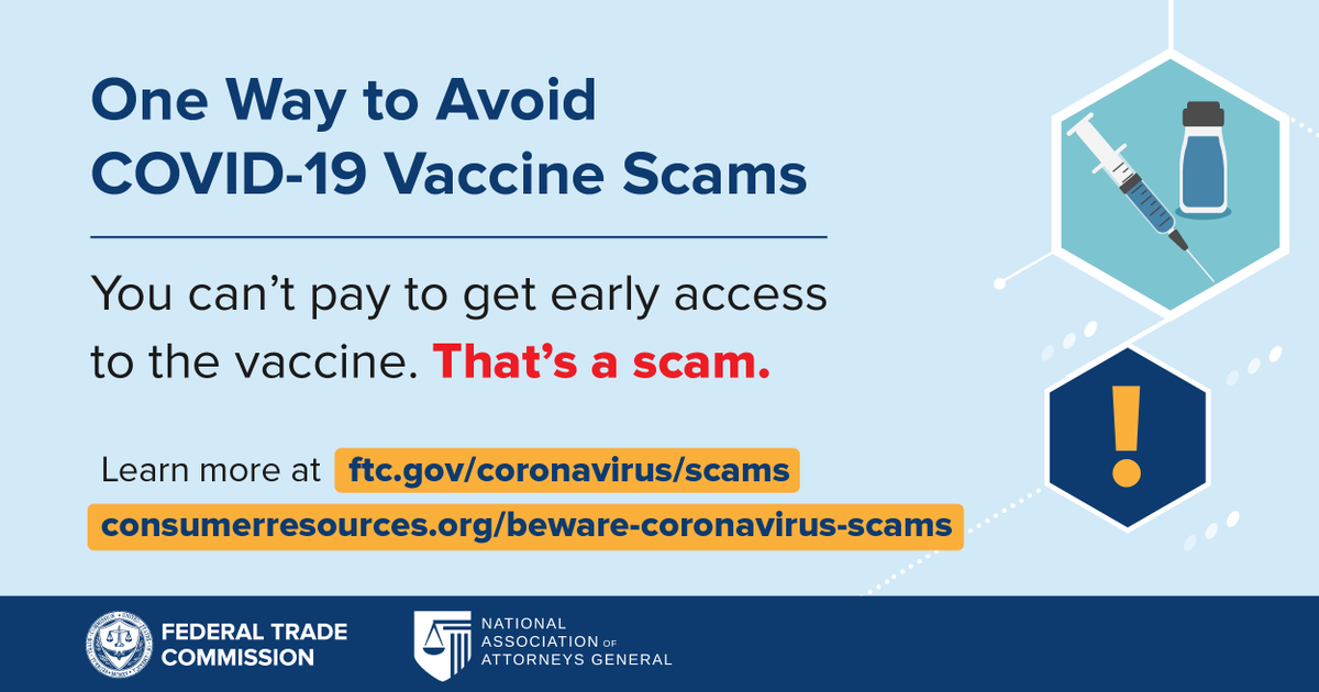 Reports about the release of #COVID19 vaccines by the end of the year are promising, but plans for distribution are still being worked out. Know that COVID-19 vaccines are in the pipeline and scammers won’t be far behind. More: go.usa.gov/x7hnM#COVID19Vaccine
