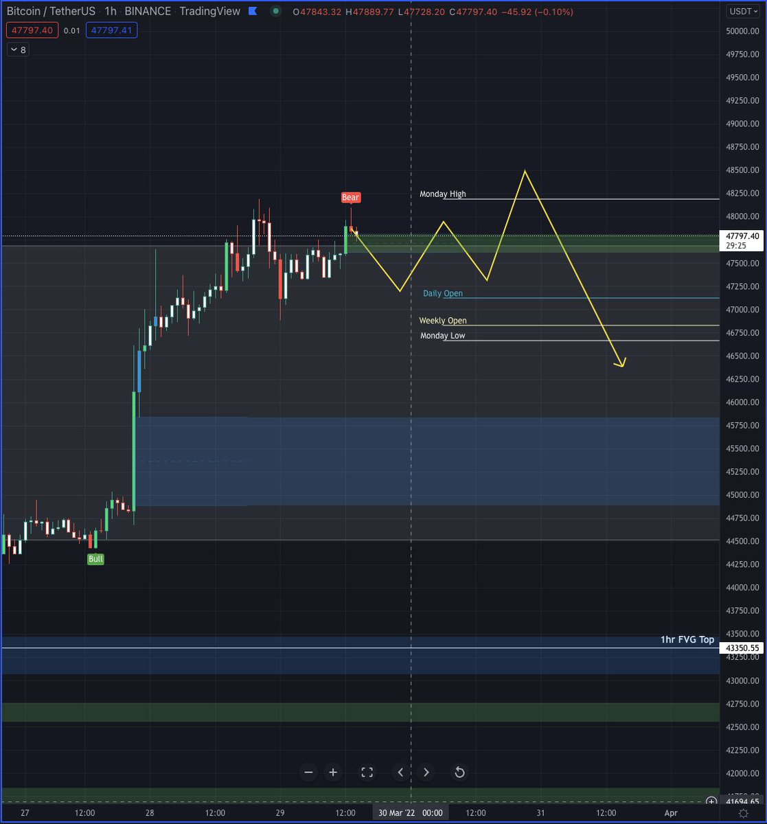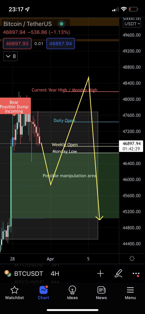 6/ Given the above information the scenario i'm looking for is Bitcoin to range here for a few days, then fake out, hit around $48500 and retrace to fill the CME Gap.