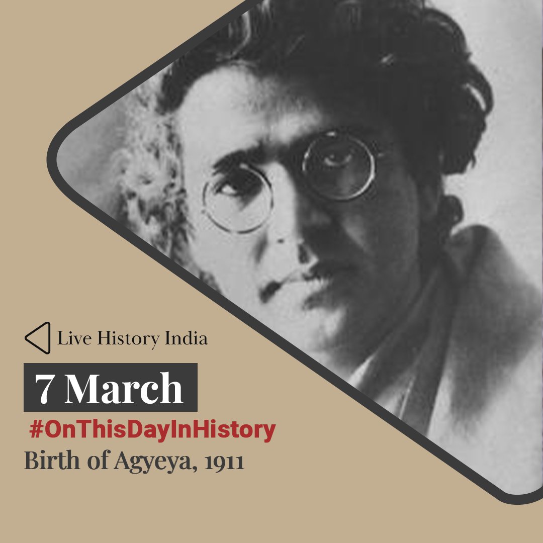 #OnThisDay in 1911, famous Hindi writer Sachchidananda Hirananda Vatsyayan ‘Agyeya’ was born in an archaeological camp at Kushinagar, Uttar Pradesh. He was the first Modernist writer of Hindi literature and laid the foundation of the Prayogwadi (Experimentalism) era in 1943.