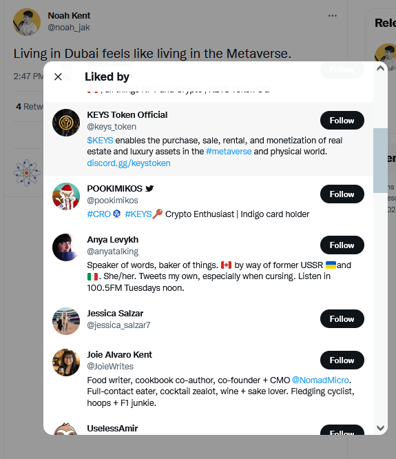 3/ Nima often posts about Dubai on IG, but the most important evidence is from another co-founder, who is still very young and he mentioned on Twitter last month “Living in Dubai feels like living in the Metaverse”. The post was liked by his mother and other co-founders.