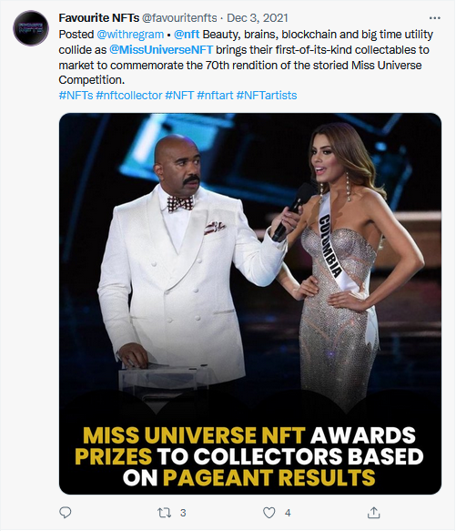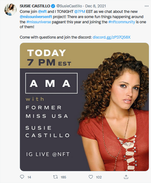 7/ One of these scams is @MissUniverseNFt and it was not mentioned on the overview in the orginal thread. This was a project that @NFT heavily promoted, even with AMA’s with the “founder”, but it was a rug and the website of the Miss Universe has been deleted.