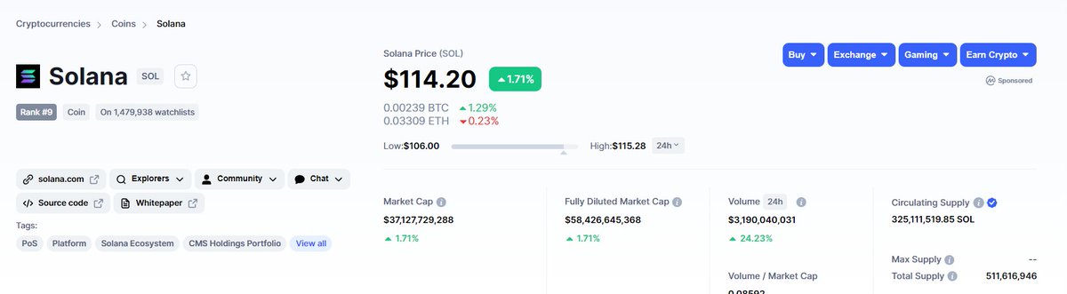 #Sol ve #Avax aynı mantıkla çalışır. O halde alacağımız en tepe marketcap yani piyasa değeri #Ethereum'un piyasa değeri olan 414 milyar dolardır. Ancak yukarıda bahsettiğim gibi Eth geçilemezdir.