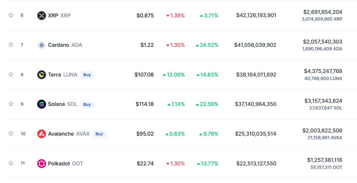 Sadece 2020-2021 yıllarını baz alırsak #Bnb'ler #Ada'lar #xrp'ler hepsi ancak 70-80 milyar doların yakınlarına gelebilmişti. (bnb bu değeri geçmişti ama kalıcı olmadı)