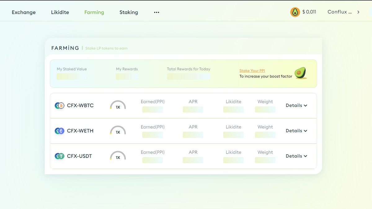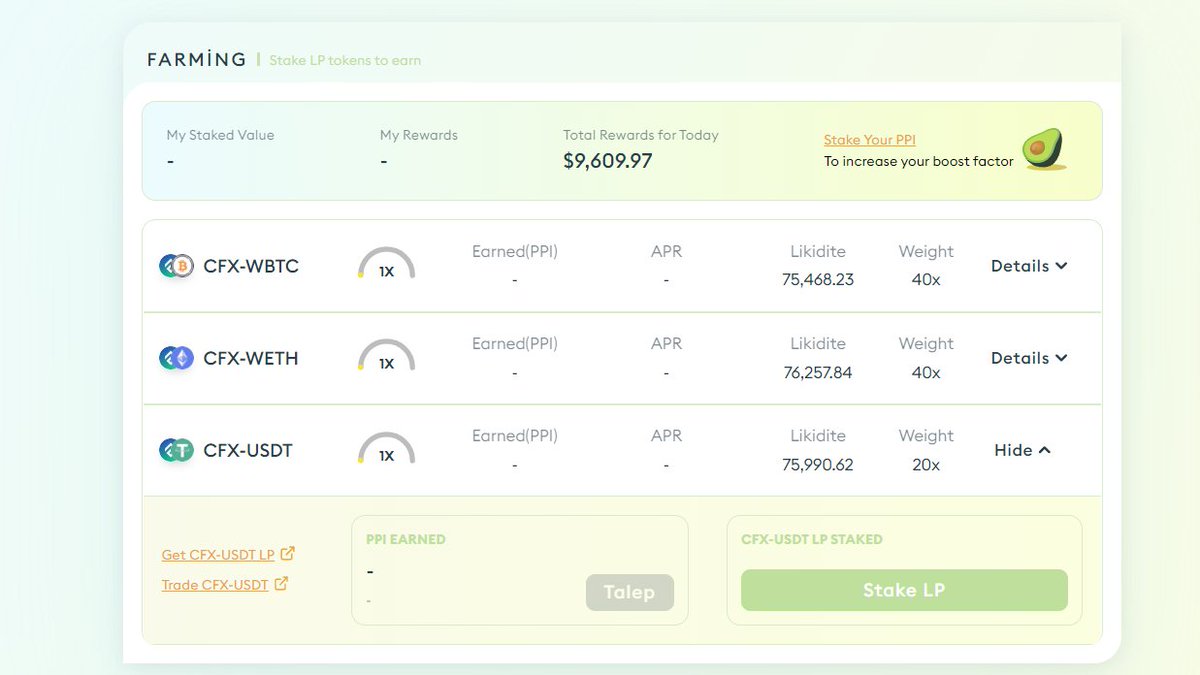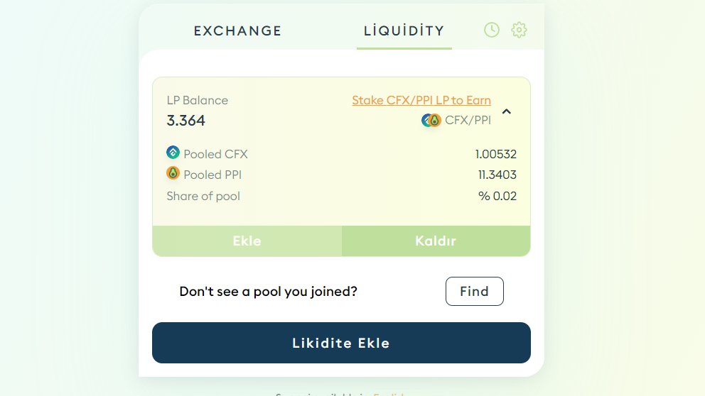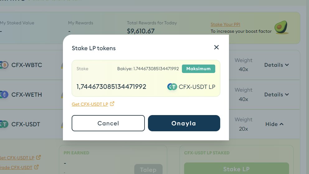 Yukarıda yaptığımız gibi örn: cfx/usdt lp oluşturup farmınge ekleyin.