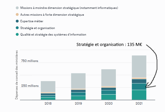 C'est à dire environ 1/5e du recours total aux cabinets de conseil, uniquement pour l'Etat