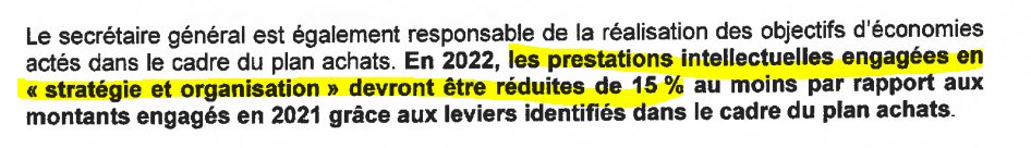 Je m'explique : la circulaire annonçait une réduction de 15% sur le seul périmètre des prestations en "stratégie et organisation".
