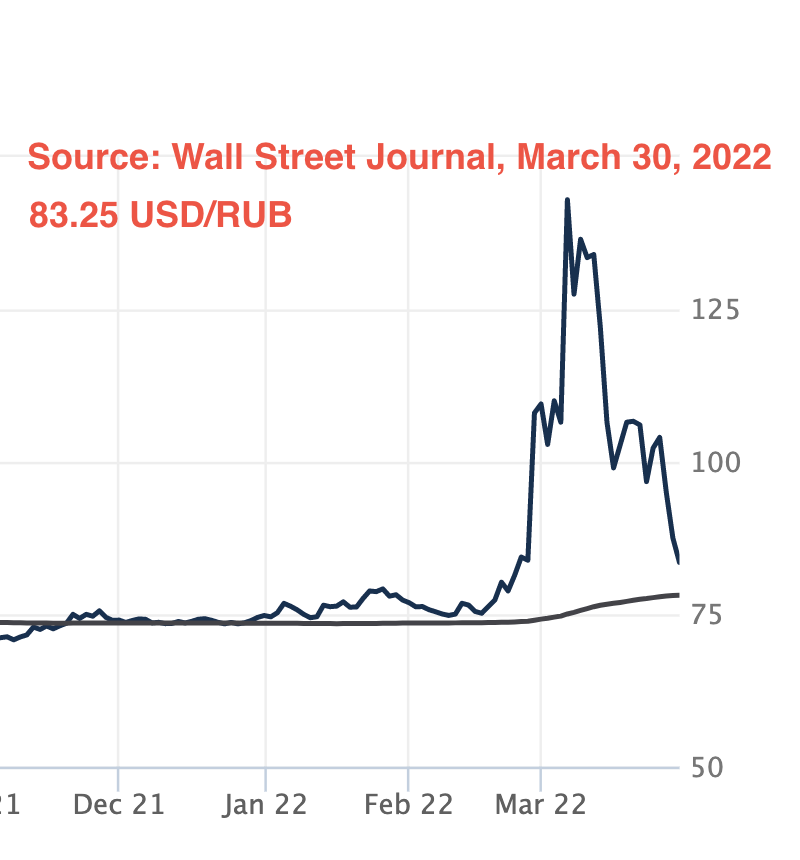 Derweil ist der Rubelkurs fast wieder auf Vorkriegsniveau (credit @simon_jaeger).