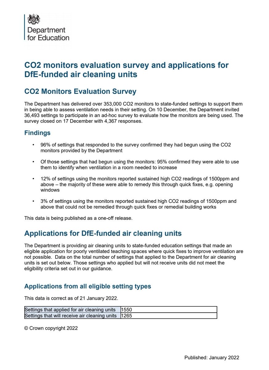 Lots of schools waited ages to get them, and not enough for all rooms, some schools got them but didn't record measurements