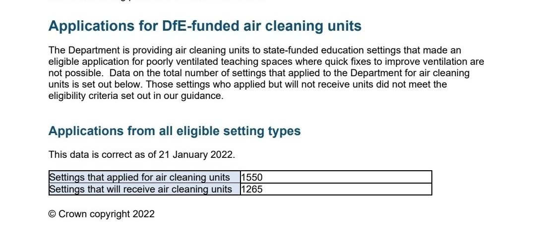 Anyone know when the DfE advertised that schools could apply for air filters?