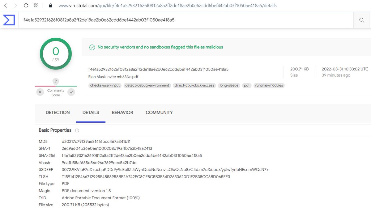 Aquí ya tenemos un primer resultado que nos descarta que pueda contener algo maliciosos.