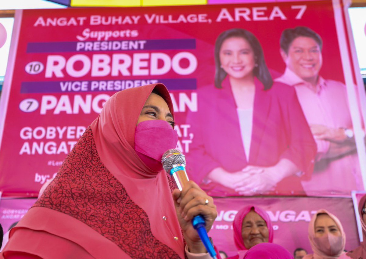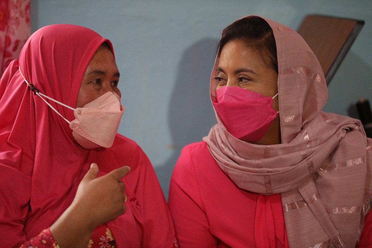 @anjocalimario Locsin also met with Angat Buhay Village Marawi beneficiary Farida Saga who helped in producing PPEs and masks during the height of the pandemic. #TheFilipinoVotes | @anjocalimario