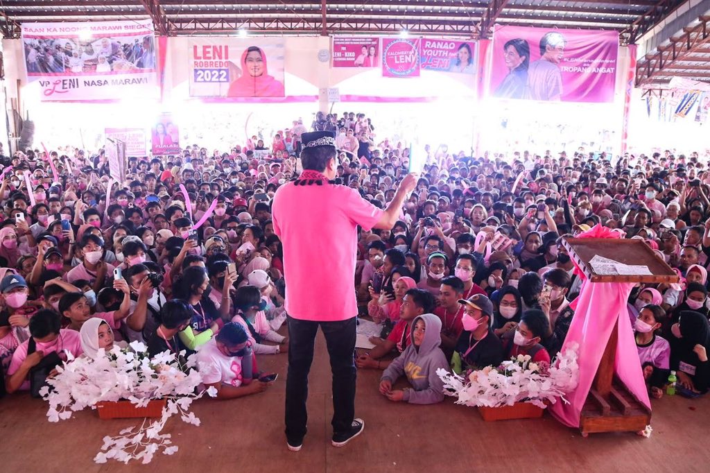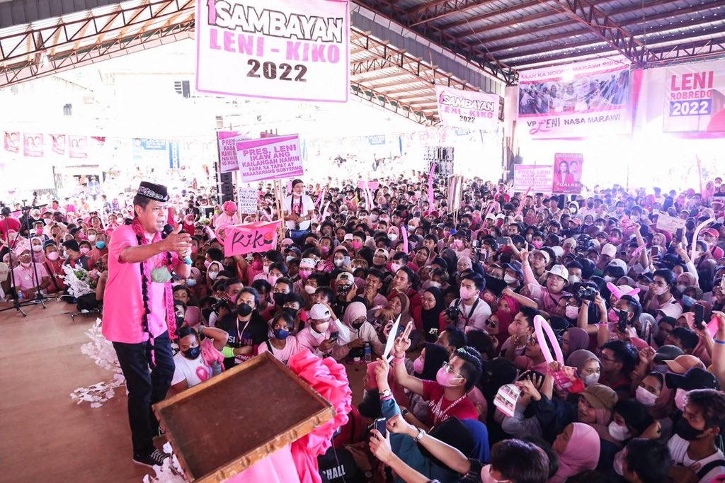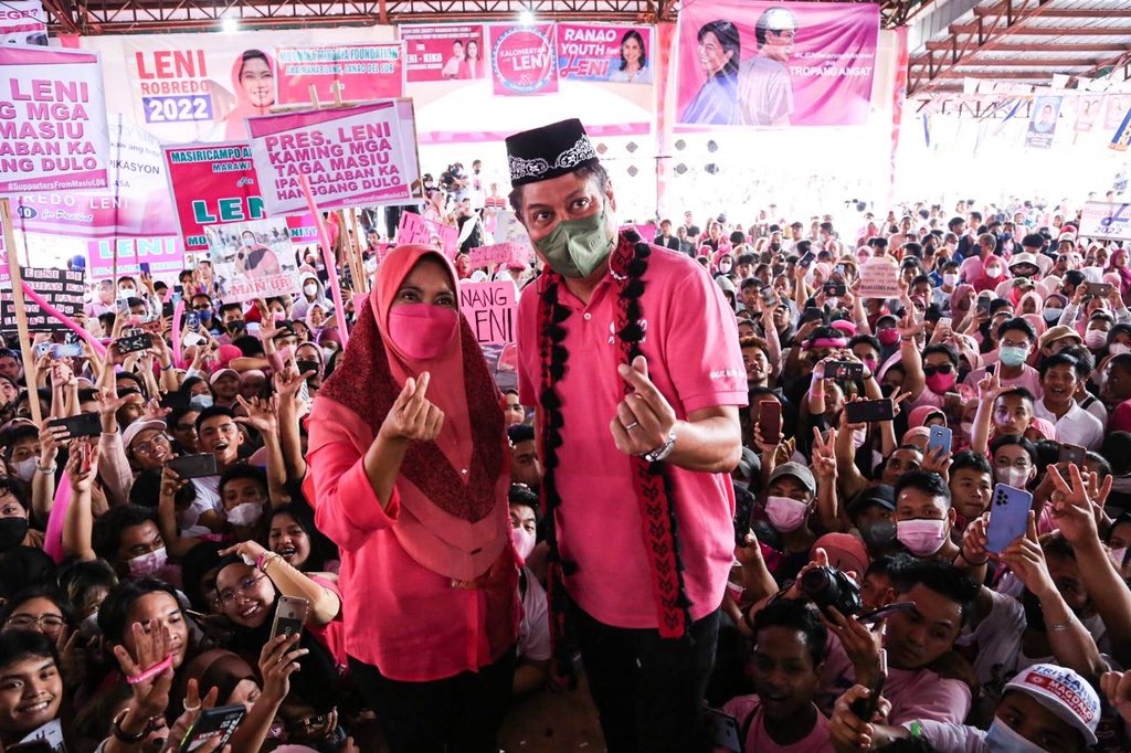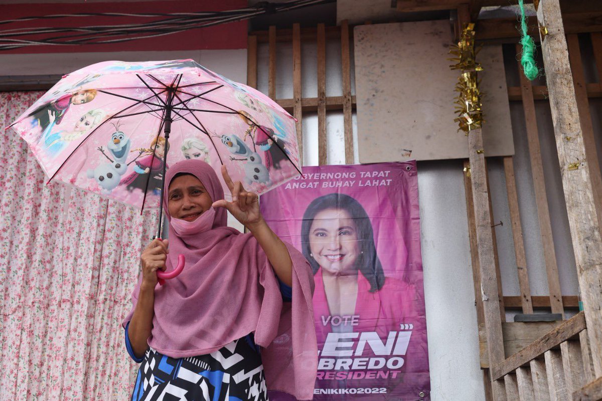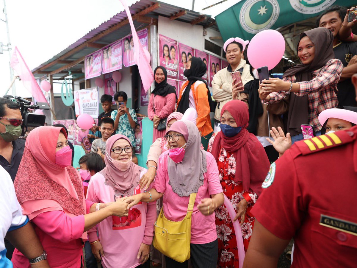 Presidential candidate VP Leni Robredo and running mate Kiko Pangilinan visit members of Bamboo Landers Multi-Sectoral Rural Workers Association in Barangay Raya Buntong, Lanao del Sur this morning. #TheFilipinoVotes | @anjocalimario