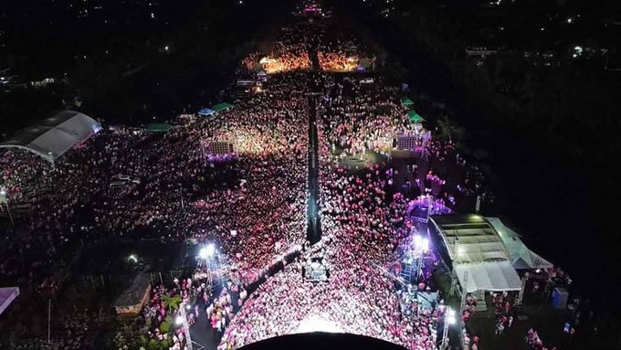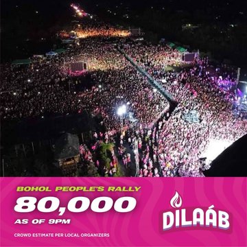 As of 9 p.m., the crowd for Leni-Kiko grand people’s rally has reached 80,000, according to local organizers. #TheFilipinoVotes | @anjocalimario