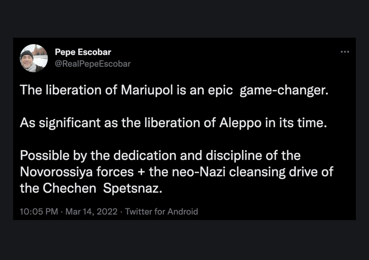 Secondly, Kyiv is now out of range of ground based heavy artillery. The city will be spared the destruction we've seen in Mariupol. It's still in range of cruise missiles and SRBMs but these are expensive and have far lower destructive potential than massed heavy artillery.