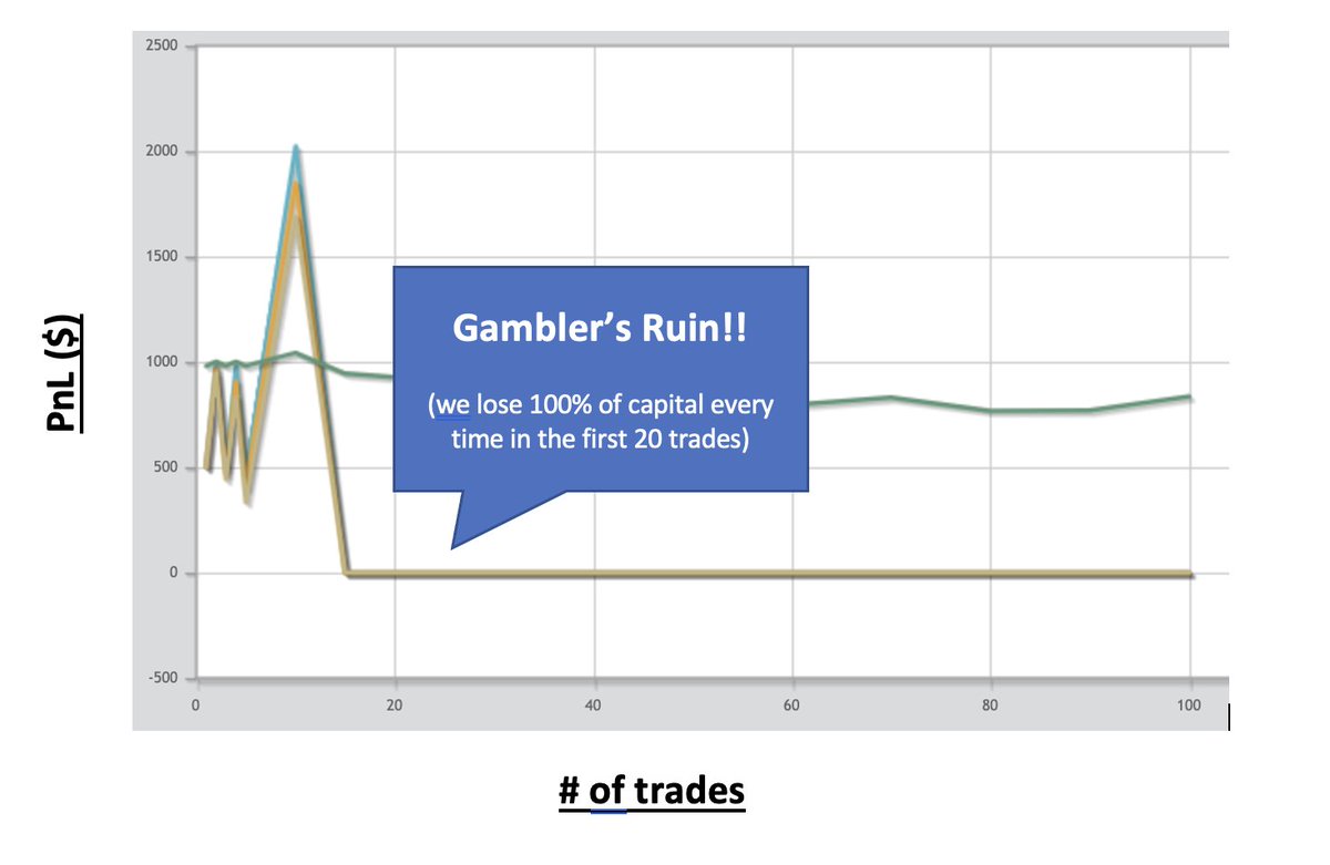 Assume u start with $10K. Ur almost guaranteed to go broke before 20 trades.