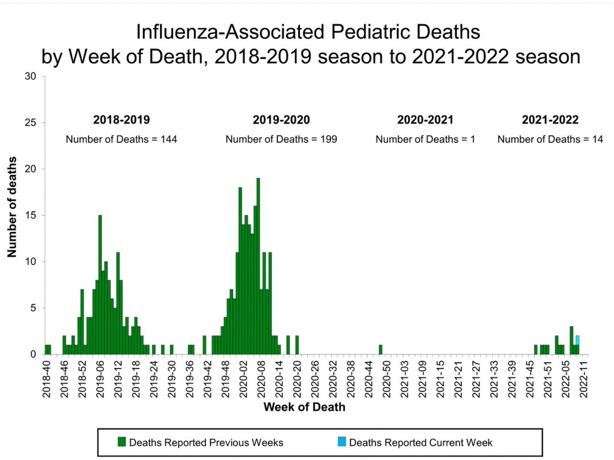 4. There was, however, another pediatric #flu death reported to @CDCgov, the 14th this winter. The child died the week ending March 5.