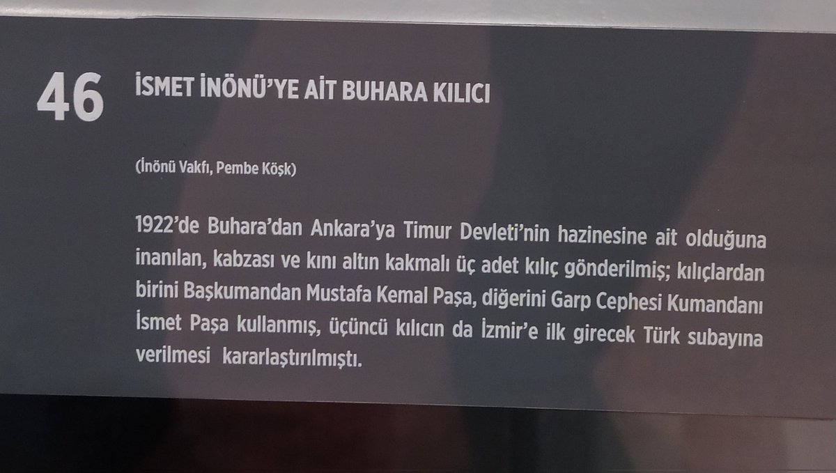 Atatürk'ün Buhara Kılıcı, Askeri Müze'de sergilenen bu kılıç mıdır acaba? Bilemedim. Şu anda nerede sergileniyor açıkçası bilmiyorum.