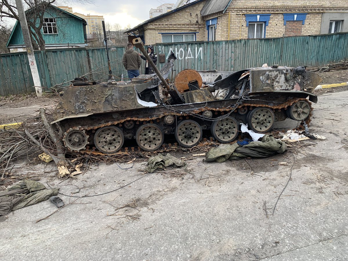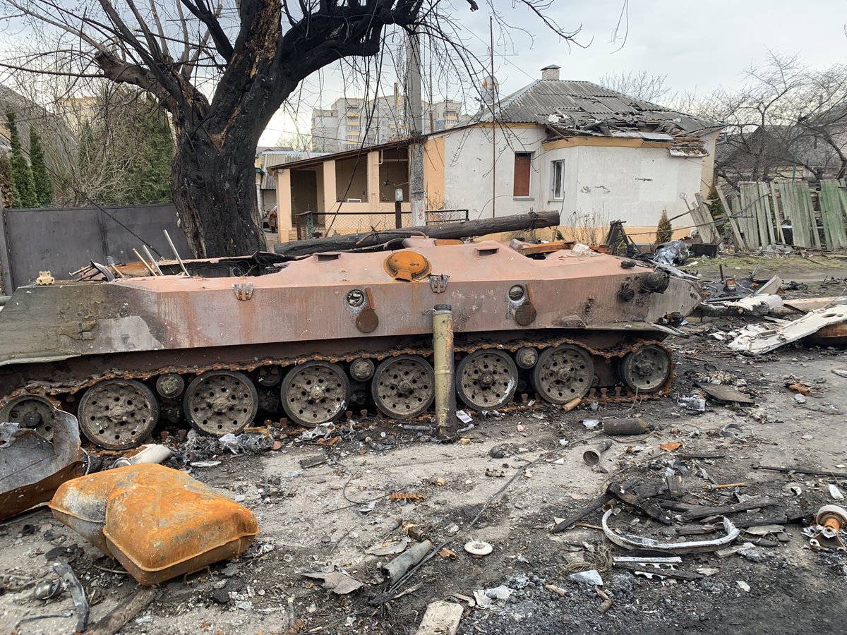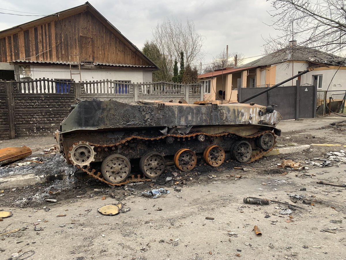 Can confirm Ukrainian armed forces destroyed an armoured convoy of 13 tanks and APCs 48 hours ago near Irpin. Visual confirmation to follow.