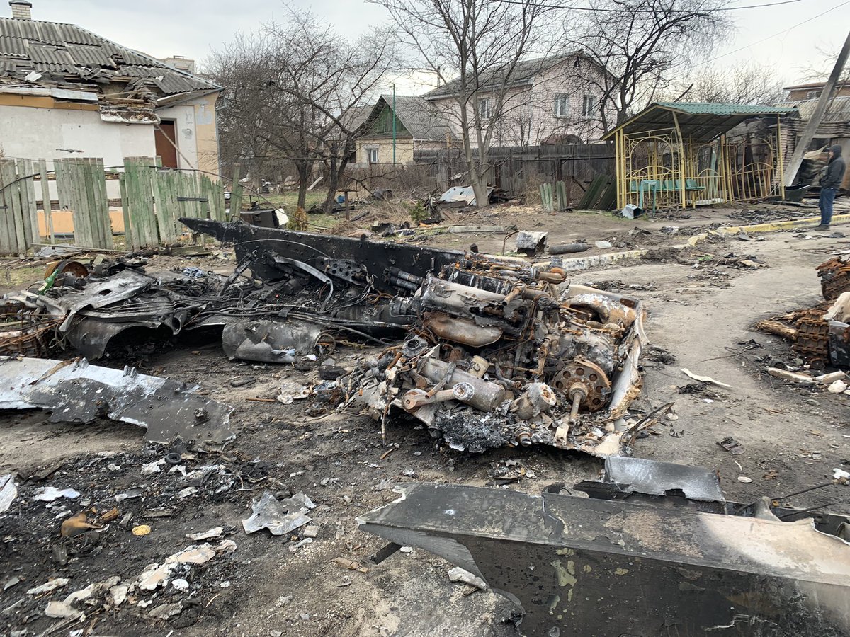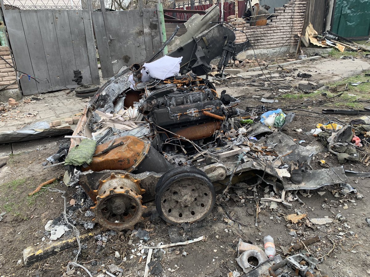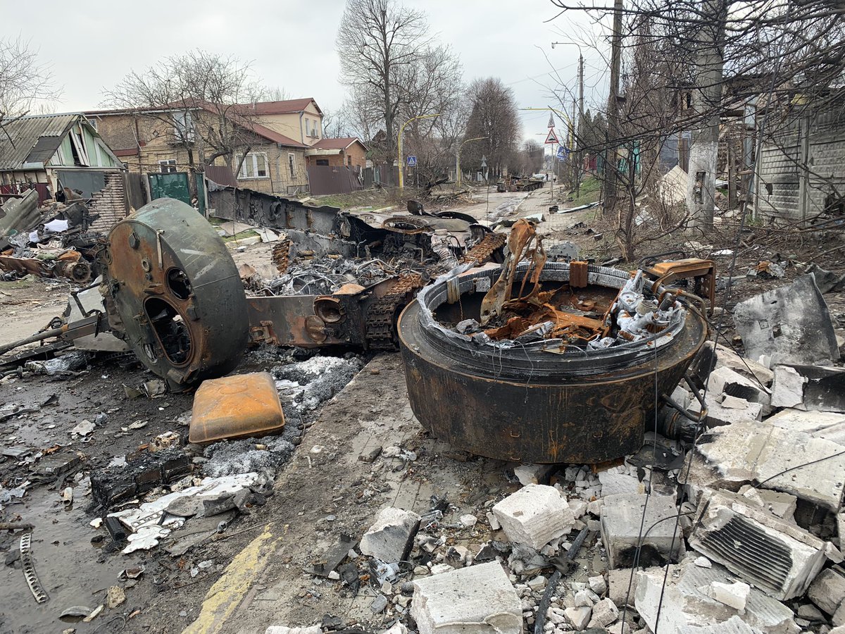 Can confirm Ukrainian armed forces destroyed an armoured convoy of 13 tanks and APCs 48 hours ago near Irpin. Visual confirmation to follow.