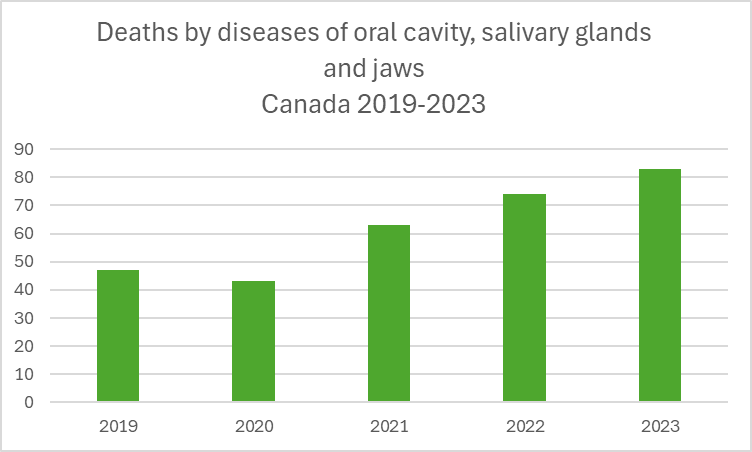 3/ Deaths in Canada by diseases of the oral cavity, salivary glands, and jaws. 🧐