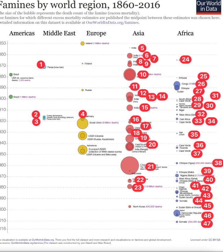 I found 47 examples of capitalist "democracies" having major famine. Since the 1950s except for the DPRK which we know will never be foot sovereign ALL FAMINES HAVE BEEN CAPITALIST.