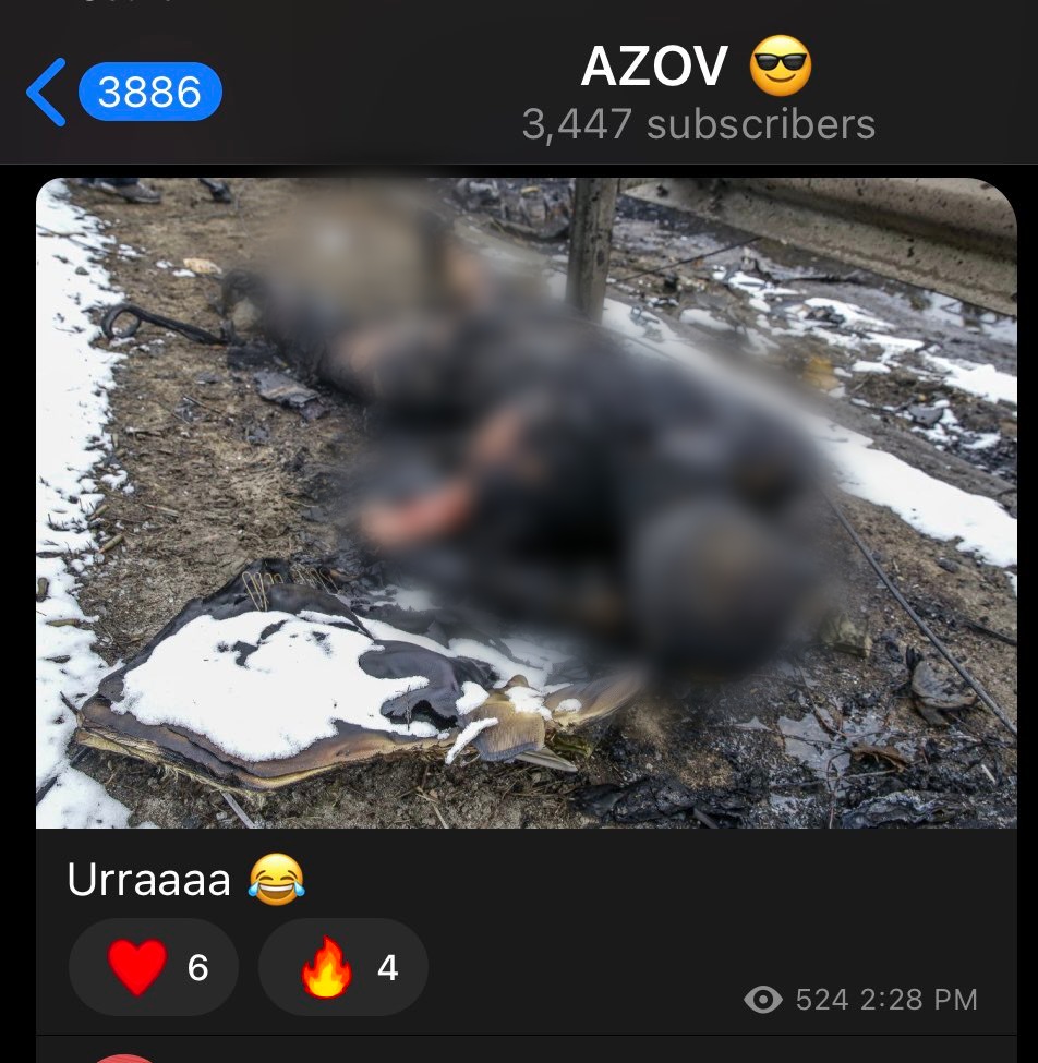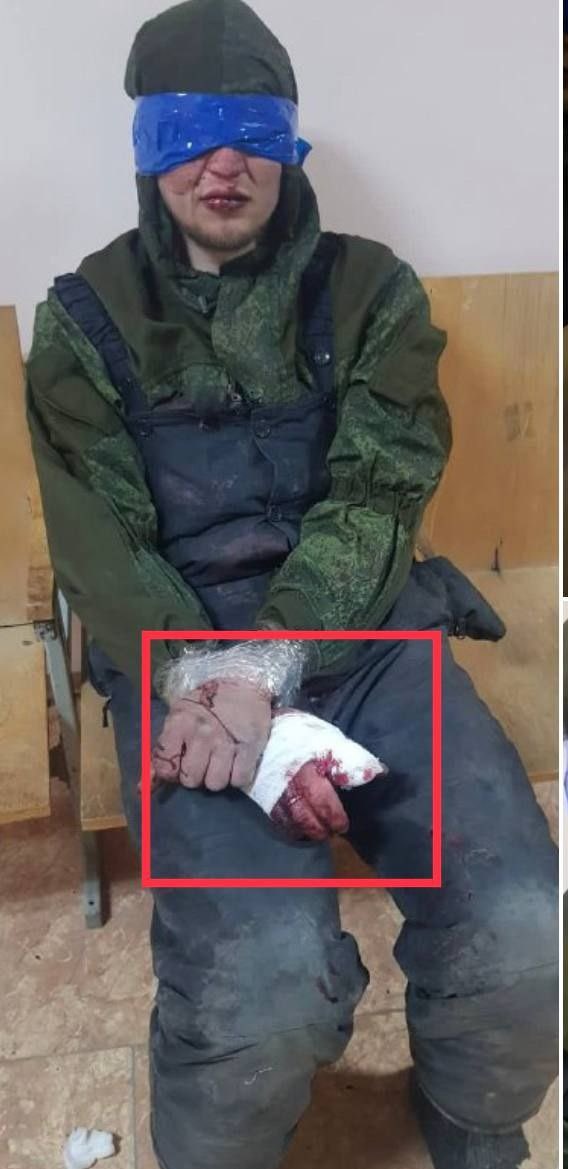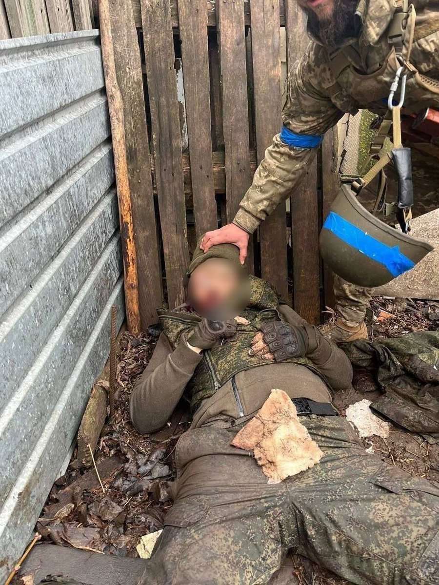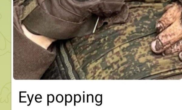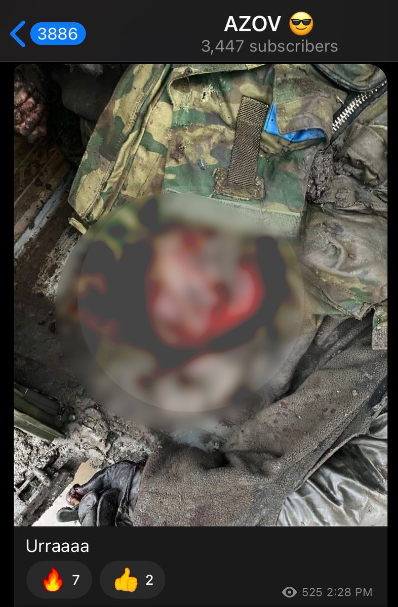 This is a ukrainian soldier who tortured a russian soldiers to death. His eye got gouged out but I can't show you that.