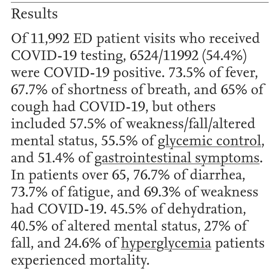 CoVid has been documented to cause altered mental status, dehydration, hyperventilation (low {xygen), and low blood sugar here: sciencedirect.com/science/articl…