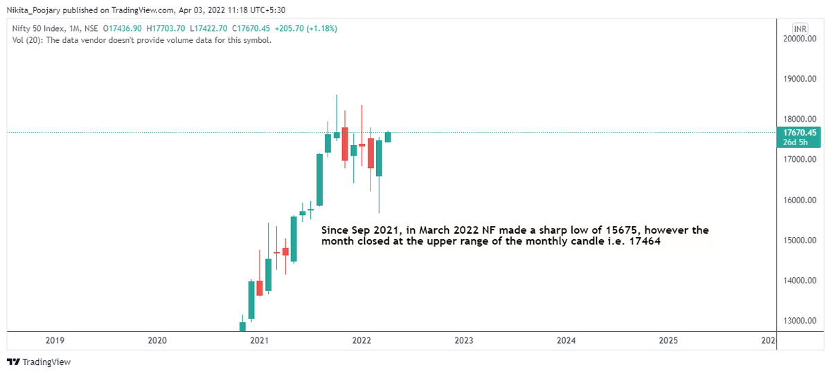 • However the huge wicks on both sides clearly depicts the volatile moves for the month