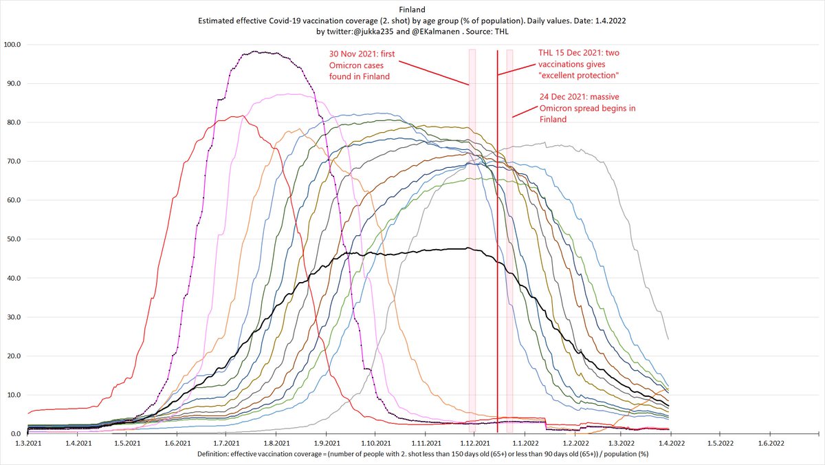 Marraskuussa 2. rokotusten teho oli täysin hiipunut yli 65-vuotiailla. Jos THL:n kanta olisi voittanut, niin juuri ketään ei olisi rokotettu 3. kertaan. On yksinomaan ministeri @KristaKiuru ansiota, ettei tilanne ole tämän pahempi. 5/x