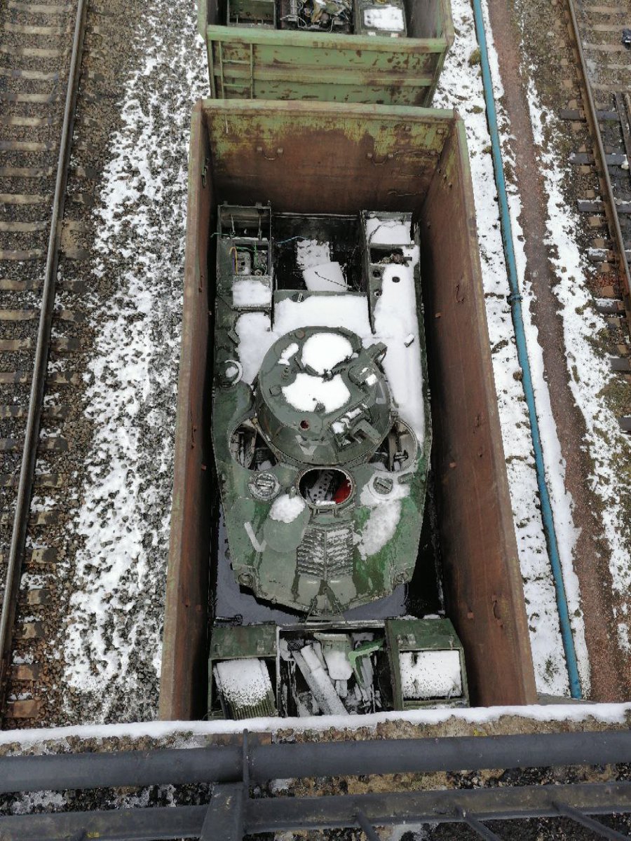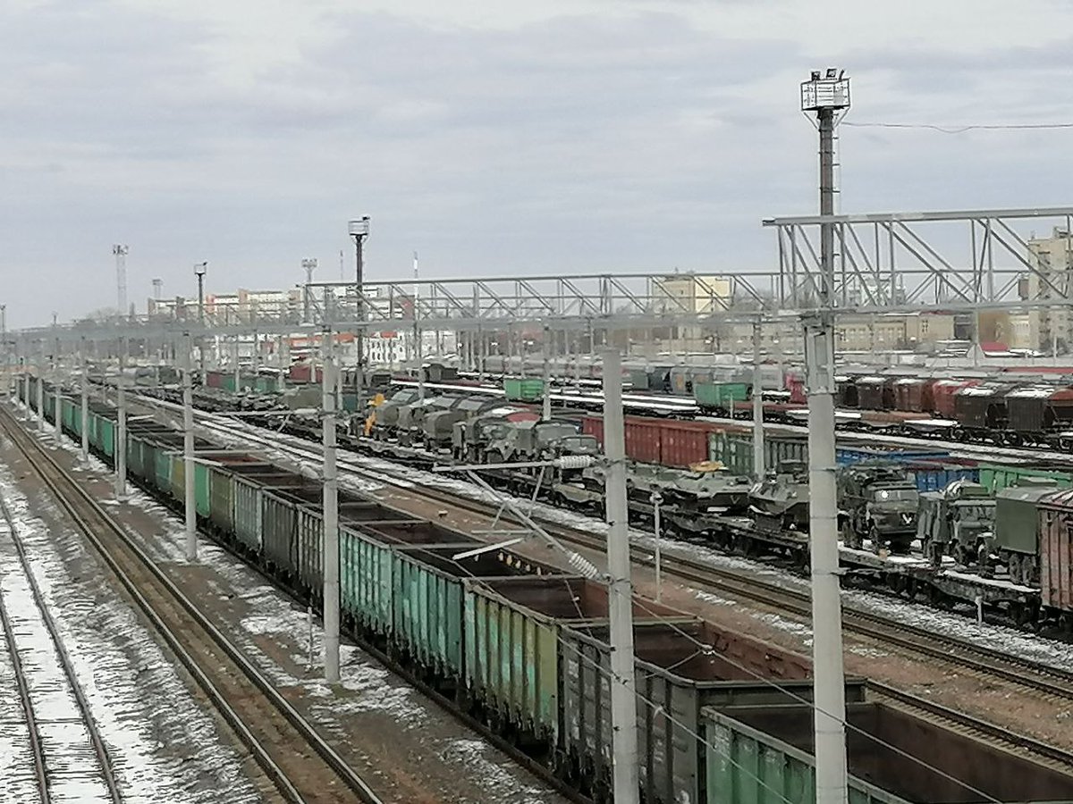 Russian equipment at the train station in Gomel, #Belarus. Some of the vehicles are stored in containers and look damaged.