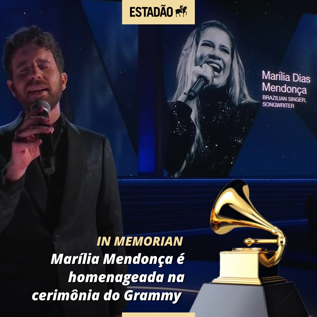 #Grammys ETERNA RAINHA 💛 Marilia Mendonça foi uma das artistas homenageadas na cerimônia; brasileira foi relembrada na seção In Memoriam, junto com Taylor Hawkins, baterista do Foo Fighters, e Charlie Watts, dos Rolling Stones (via @EstadaoCultura)