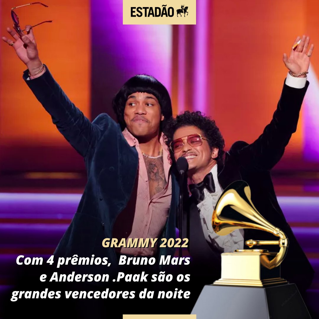 #GRAMMYs Bruno Mars e Anderson .Paak foram os grandes vencedores da 64ª edição do prêmio; Jon Batiste levou prêmio de Álbum do Ano. Veja lista: bit.ly/3DBxDR0 (via @EstadaoCultura)