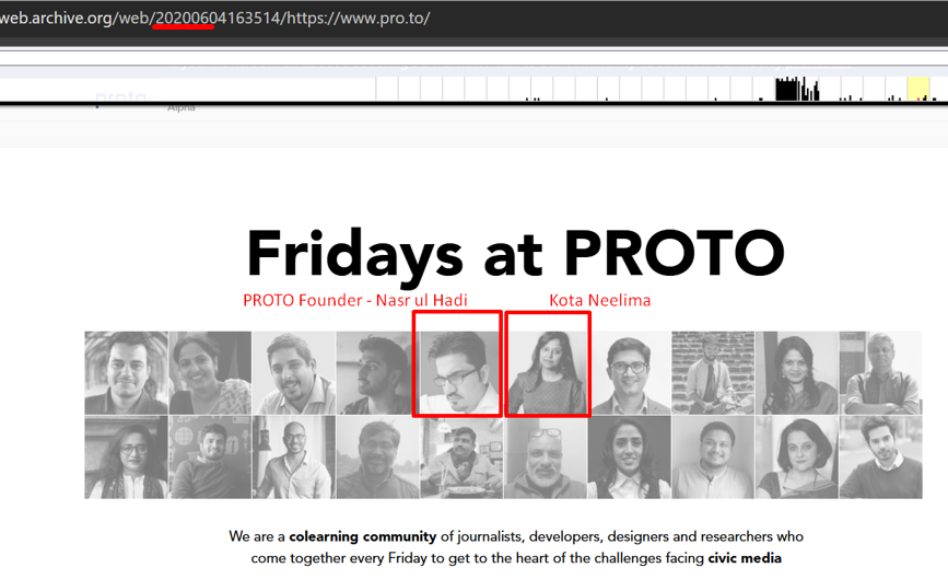 Instead of threatening legal action, why not explain, Madam @KotaNeelima, why PROTO founder Nasr ul Hadi featured your profile on PROTO’s homepage for years, prominently displayed alongside his own profile?
