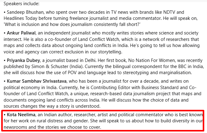 Kota Neelima sits on Congress Working Committee, ex VP of Telangana Congress, simultaneously being a part of PROTO, a Delhi based company that controls selection of Indian journalists to receive foreign funding.