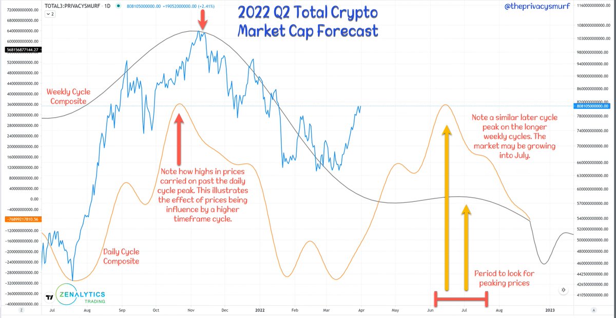 The projections for the total #crypto market similarly reflect peaking prices from mid-June to mid-July however past cycles have shown the weekly cycle will extend beyond the daily suggesting potentially July for the final bullish push in the market.
