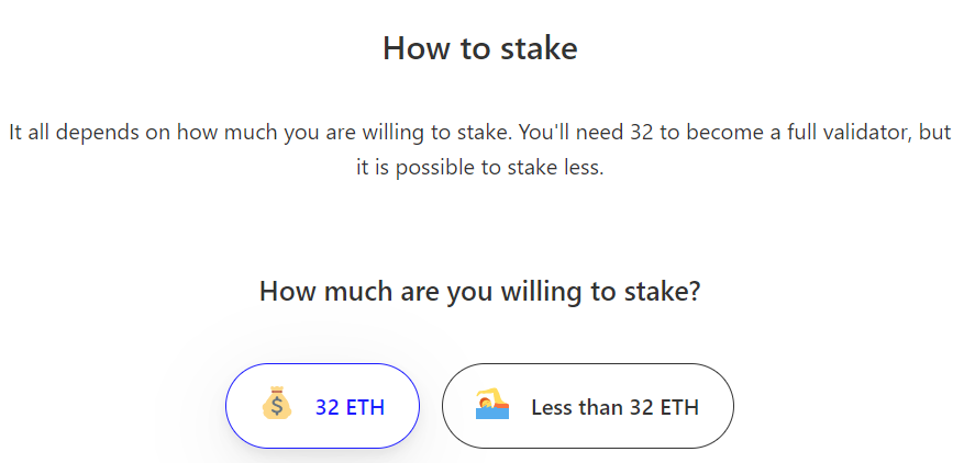 • At least 32 ETH to become a validator