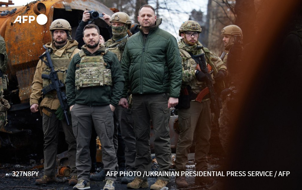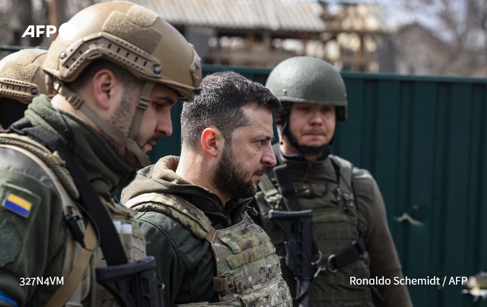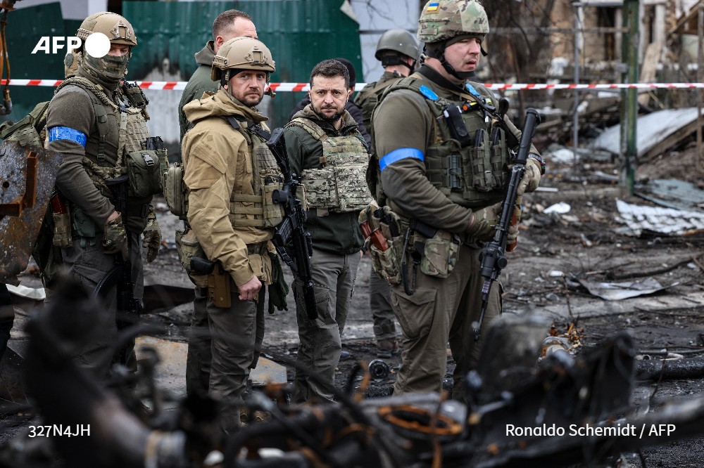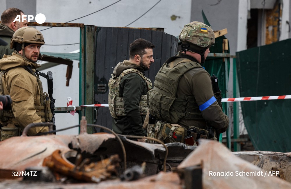 [À LA UNE 8H] Le président ukrainien Volodymyr Zelensky va s'exprimer mardi devant le Conseil de sécurité de l'ONU après la découverte de massacres de civils près de Kiev, et notamment à Boutcha où il s'est rendu lundi #AFP 1/5
