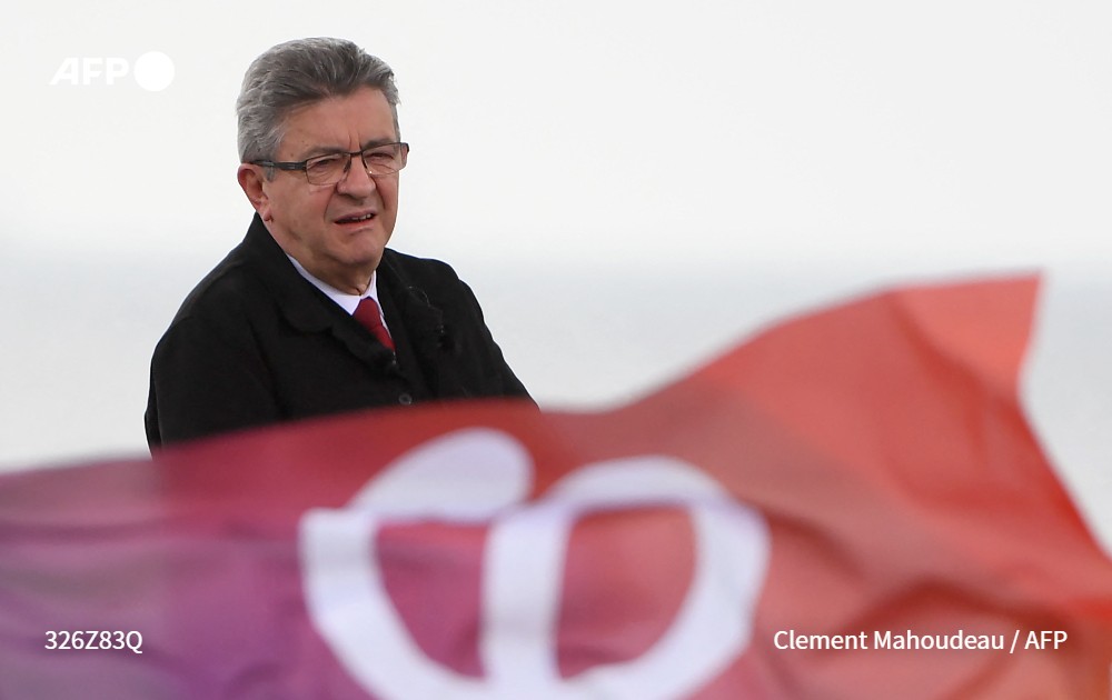 [À LA UNE 8h] A cinq jours du premier tour, Jean-Luc Mélenchon tient le dernier grand meeting de sa campagne en se démultipliant dans onze autres villes grâce à des hologrammes pour tenter de s'immiscer dans le duel annoncé entre Emmanuel Macron et Marine Le Pen #AFP 2/5
