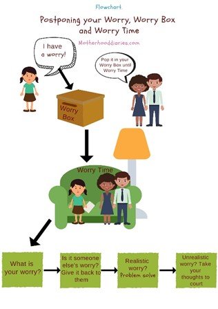 2.Choose a specific time in the day when you will return to them 3. As that time arrives, either start thinking or consider postponing worries to another specific time. Whenever possible, choose to postpone.
