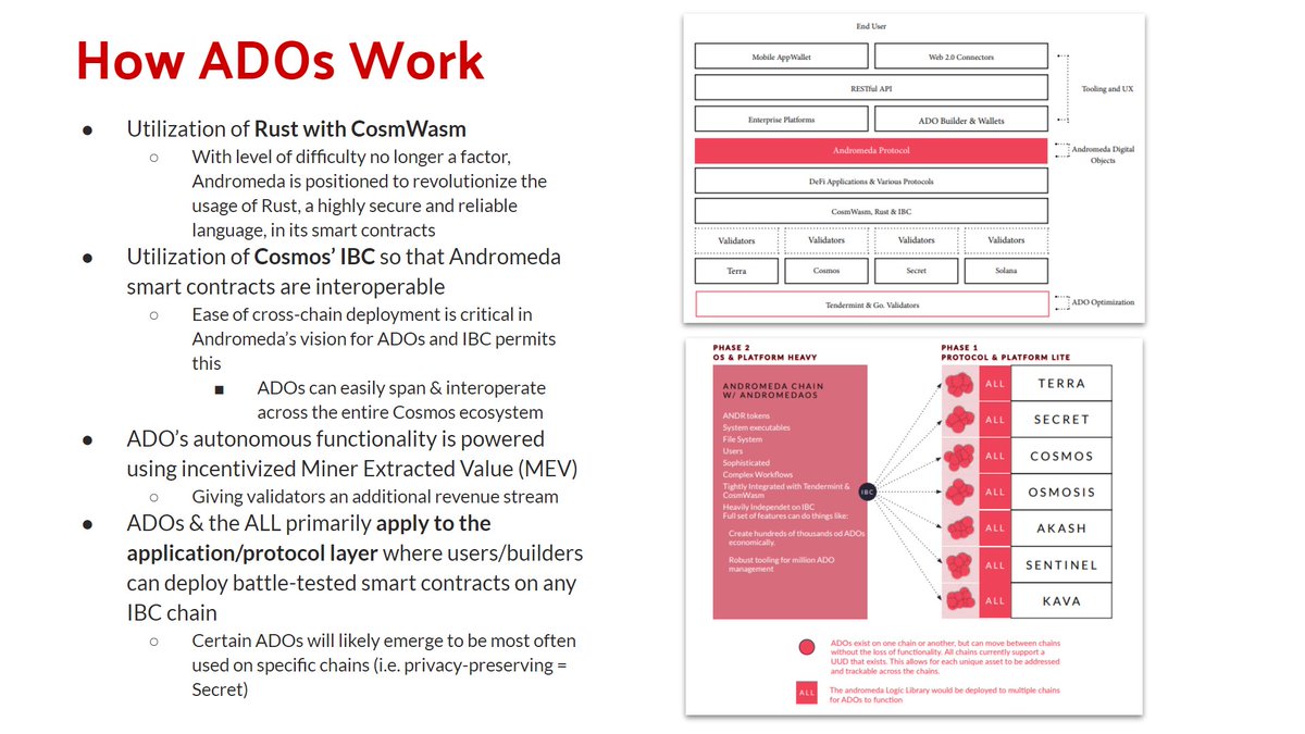 8 - How does this work? ADOs utilize Rust & CosmWasm + @cosmos’s IBC technology to spawn interoperable, secured, & reliable smart contracts. Better yet, they operate autonomously meaning they don't require user inputs to function (powered using incentivized Miner Extracted Value)