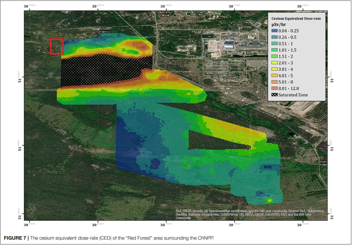Secondo questo documento di un'indagine del 2019, le misurazioni del livello del suolo della radiazione nell'area della Foresta Rossa a #Chernobyl sono risultate essere (1/5)